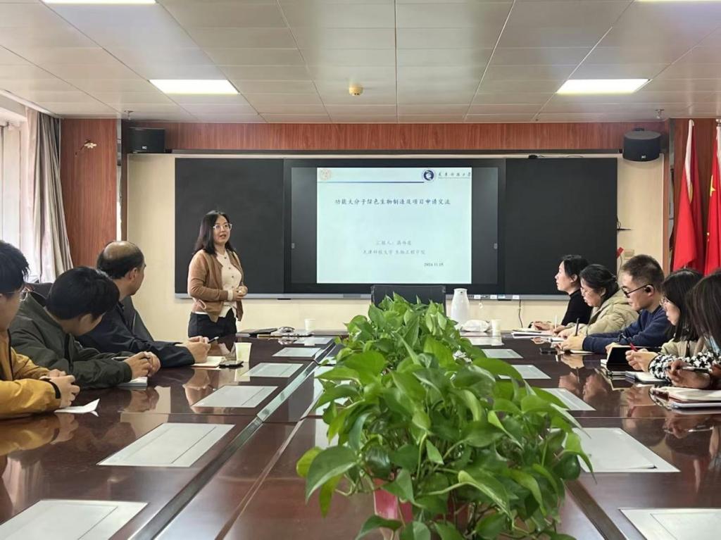 2024年11月5日,vsport官方网站邀请天津科技老员工物工程公司高伟霞副教授做“功能性生物大分子的绿色生物制造及其基金项目申请经验”学术讲座。讲座由副经理鲁丽丽主持,vsport官方网站50余名师生聆听了讲座。