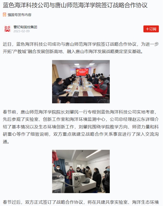 vsport官方网站与曹妃甸蓝色海洋科技有限公司开展合作对接