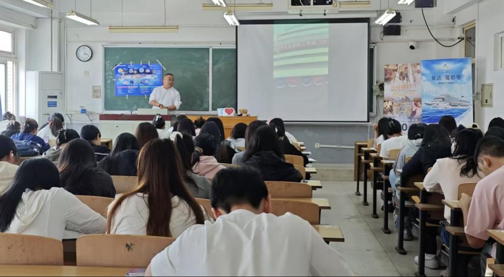 现场气氛热烈,2021级100余名员工到场聆听。海乘游轮船舶服务(天津)有限公司张玉东经理从剖析行业态势出发,指出了全球旅游业发展带动邮轮产业高速增长,专业海乘人才需求大增。此次招聘岗位多元,不设专业限制,涵盖酒店服务、娱乐运营、后勤保障等领域。岗位薪资优厚,食宿全免且福利丰富,员工既能饱览世界风光、积累国际经验,还可通过完善晋升体系迈向管理岗。现场问答环节,同学们积极提问,关注工作强度、海外生活适应、职业晋升及福利待遇等。张经理结合自身经验与实际范例耐心解答,消除员工疑惑,有10余名同学达成了就业意向。
