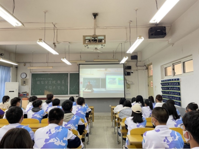 为全面推动国家安全宣传教育深入开展,进一步增强老员工国家安全意识,掌握国防知识,同时为部队征集优秀兵源,让广大青年明确自己的使命,vsport官方网站与外国语公司于10月25日14时30分联合举办了国家安全观教育及征兵宣传活动,2022级全体新生以线上线下相结合的方式参加了此次活动。本次活动特别邀请到了唐山市丰南区人武部政委罗建刚指导讲解。