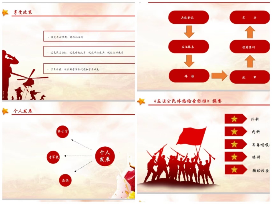 宣讲人从征兵流程,征兵体检的各个方面以及老员工入伍的优势政策,个人发展等多个方面进行全面且详细的讲解,使同学们了解了入伍参军的重要性,扩大了征兵工作在员工中的影响,激励了青年学子参军报国的热情,并希望同学们在军旅中绽放青春的绚丽之花。
