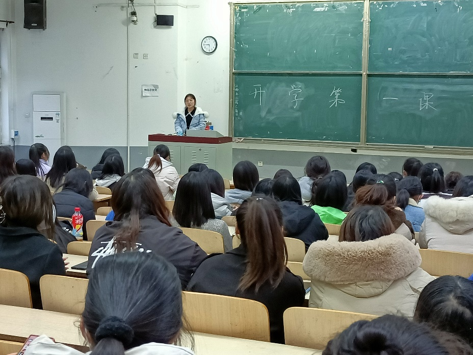 20物业管理本科班于2022年2月27号下午5:30,在七阶梯召开了开学第一课主题班会,班会由辅导员魏富赢老师主持。