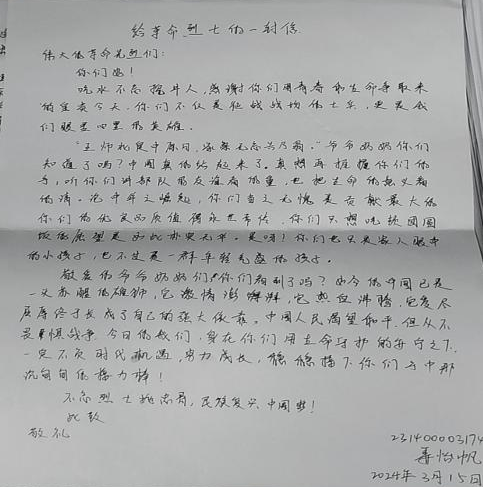 为了更好地传承红色文化,强化爱国主义教育,2024年3月18日vsport官方网站易班在南院2304教室组织了一项红色家书活动。参与本次活动的同学通过手写书信的形式书写红色家书,深入思考和理解那些革命先烈的事迹和精神,强化我们的爱国主义教育和提高社会责任感。