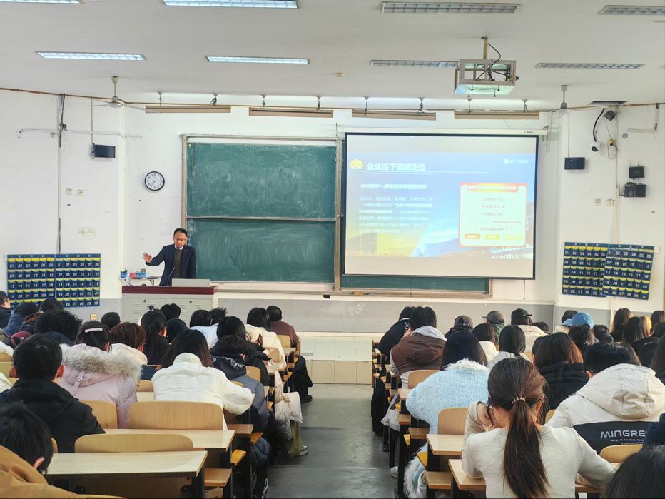 宣讲伊始,苏宁易购天津大区人事总监薛忠良详细阐述了企业定位,强调其在零售行业的领先地位与创新理念,展现出作为行业领军者的格局与视野。随后深入讲解了企业的发展历程,从创立之初的艰难探索到逐步壮大,一系列关键节点与战略决策的回顾,凸显出企业强劲的发展动力和深厚底蕴。同时,列举诸多如市场份额的持续攀升、技术创新成果以及广泛社会影响力等方面的业绩,彰显了企业的雄厚实力与行业竞争力,赢得了在场师生的高度认可。